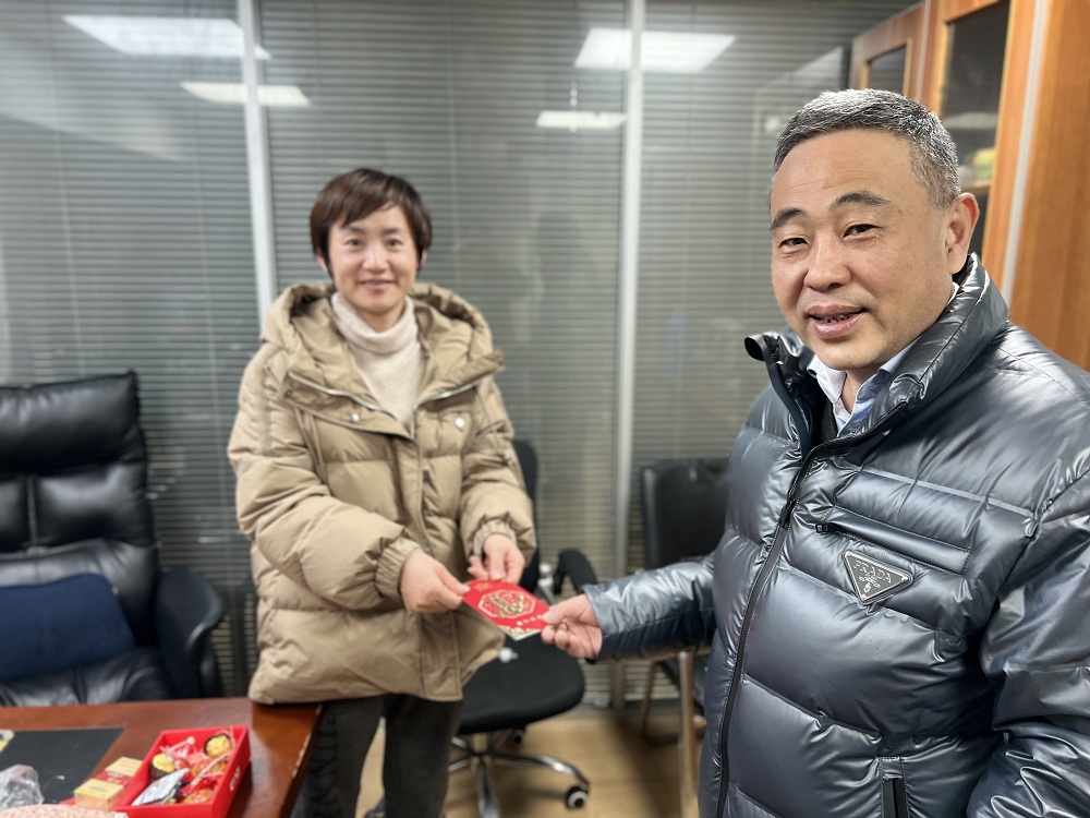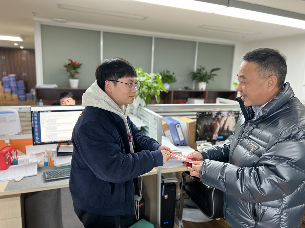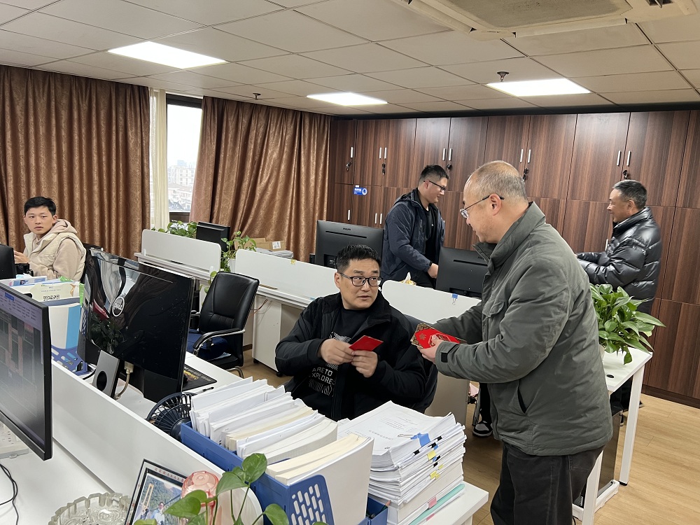 万象赋新,鹏程万里,开工行大运,浙江振丰建设有限公司董事长陈迪丰和副总葛伟亲自给每位员工送去了新年祝福和开工红包。大家都笑意盈盈,感谢领导的祝福和关爱,新的一年继续携手并进,再谱新华章。