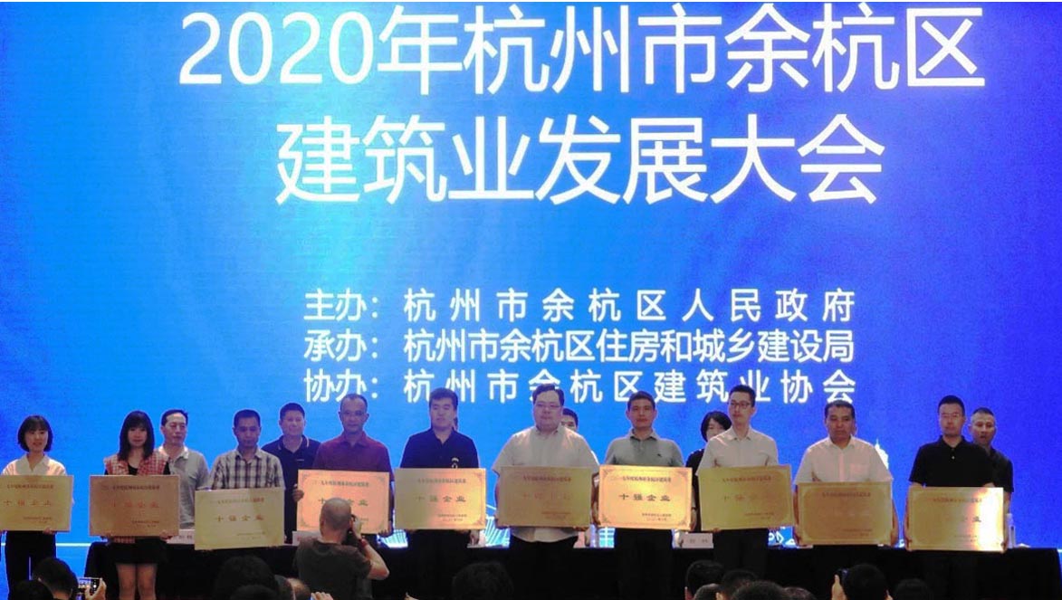 6月23日,杭州市余杭区建筑业发展大会胜利召开。会上,我司被授予“2019年度余杭区建筑业十强企业”荣誉,我司沈红军、吴江锋两位同志荣获“2019年度余杭区建筑业十大建造师” 荣誉称号等。公司总经理徐祖雷代表公司接受了大会表彰。