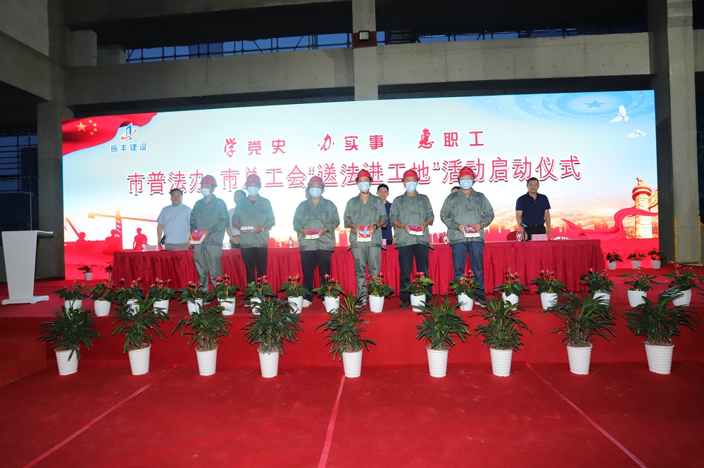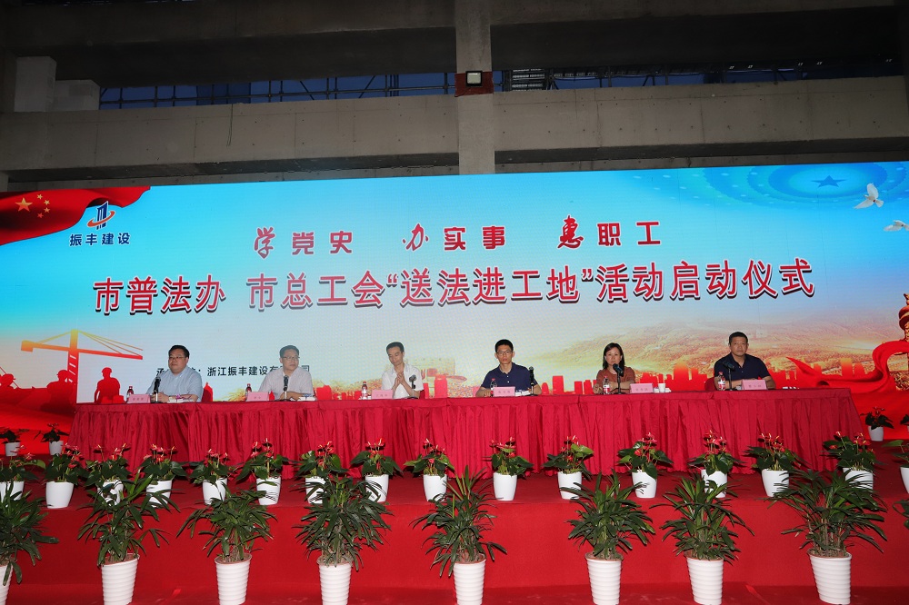 以“学党史 办实事 惠职工”为主题,为平安杭州建设保驾护航,向党的百年华诞献礼。杭州市总工会开展“送法进工地”法律宣讲活动,于2021年6月17日晚7点,在浙江振丰建设有限公司余政储出【2018】19号地块开发项目(C12项目)举行了启动仪式。