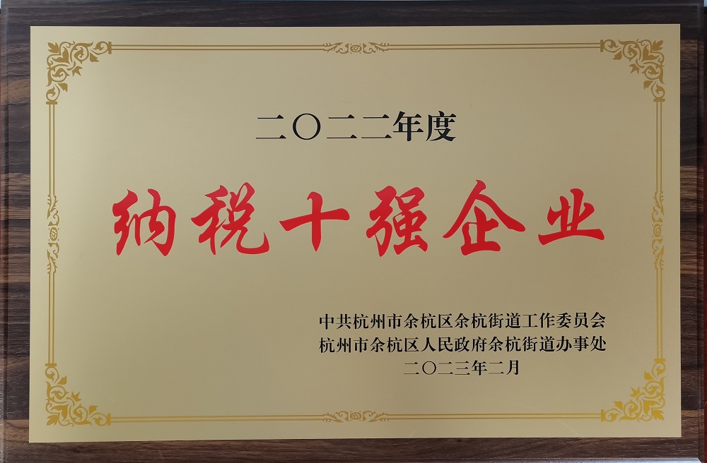 祝贺公司荣获2022年度余杭区余杭街道纳税十强企业荣誉