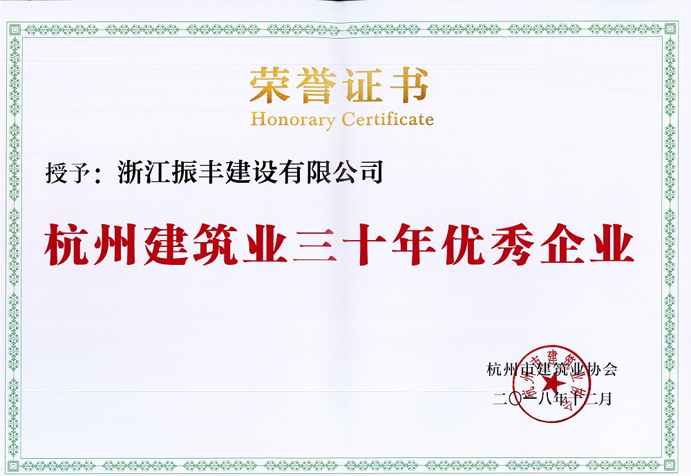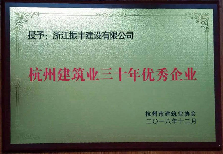 我司喜获杭州市建筑业三十年优秀企业荣誉