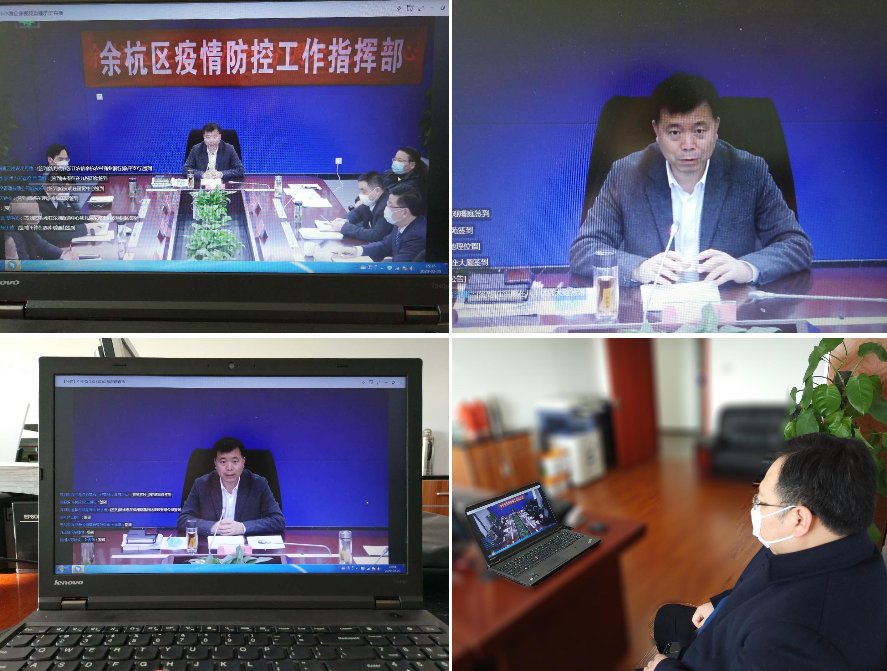 2月20日下午,2020年余杭区举行有关疫情防控工作视频会议,区长、区新冠肺炎疫情防控指挥部总指挥陈如根对疫情防控重点工作再部署。区委书记张振丰作指导讲话。我司总经理徐祖雷代表公司参加此次会议。