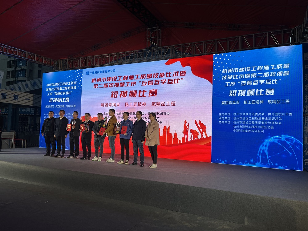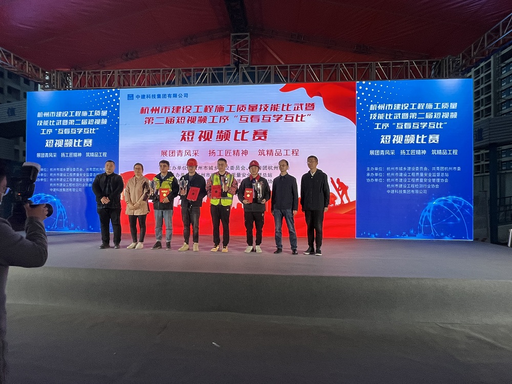 11月23日,由杭州市城乡建设委员会、共青团杭州市委举办的杭州市建设工程质量技能比武暨第二届样板工序“互看互学互比”短视频比赛成功举办,我司代表队在全市66支队伍参赛的混凝土“青工技能比武”中脱颖而出,荣获二等奖,其中主要参赛选手宋佳津赛前准备充分,在理论考试中稳定发挥,取得高分,同时在实操环节中关注细节,有条不紊,顺利完成各项环节,最终获得“杭州市优秀青年岗位能手”荣誉称号,展现了我司青年员工的职业风采。同时在样板工序“互看互学互比”短视频比赛中,五月红项目部选送的作品(由我司和中国联合工程有限公司共同申报)“预应力型钢组合支撑安装”斩获二等奖。