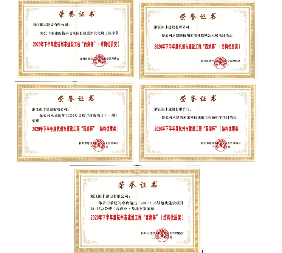 我司多个工程喜获“西湖杯”(结构优质奖)