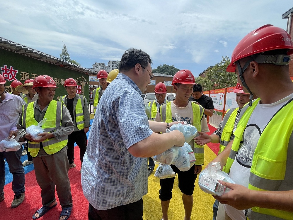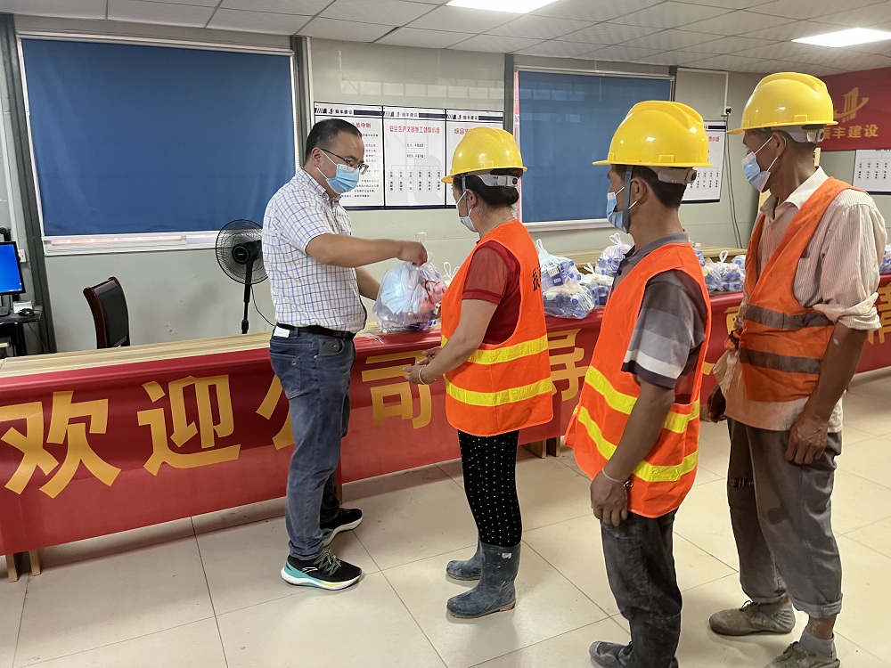 慰问小组为职工逐一送上高温慰问品,并叮嘱大家在高温天气户外作业注意劳逸结合,避开高温时段,做好防暑降温;同时大家要始终紧绷安全生产这根弦,在确保工程安全和质量的前提下,按时序推进项目建设,打造精品工程;且再次强调要牢牢守住疫情防控的底线,全面筑起常态化疫情防控的铜墙铁壁。
