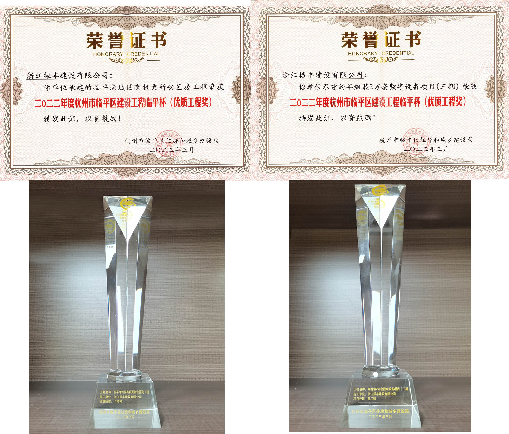 随着2022年度杭州市临平区建设工程临平杯(优质工程)评审结果的揭晓,我司承建的临平老城区有机更新安置房项目、年组装2万套设备项目(三期)双双荣获2022年度杭州市临平区建设工程临平杯(优质工程)奖。