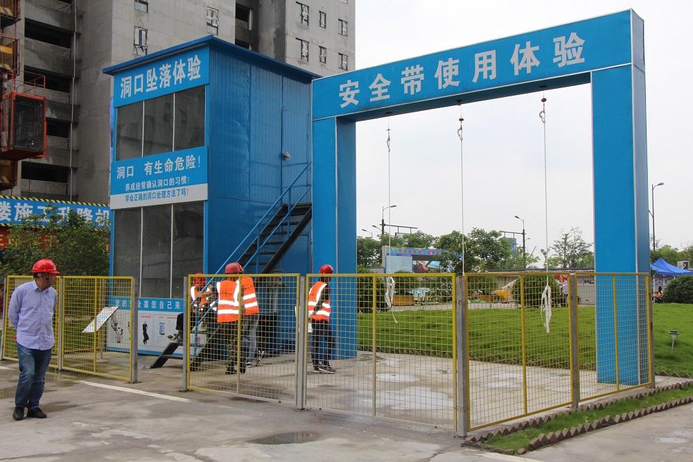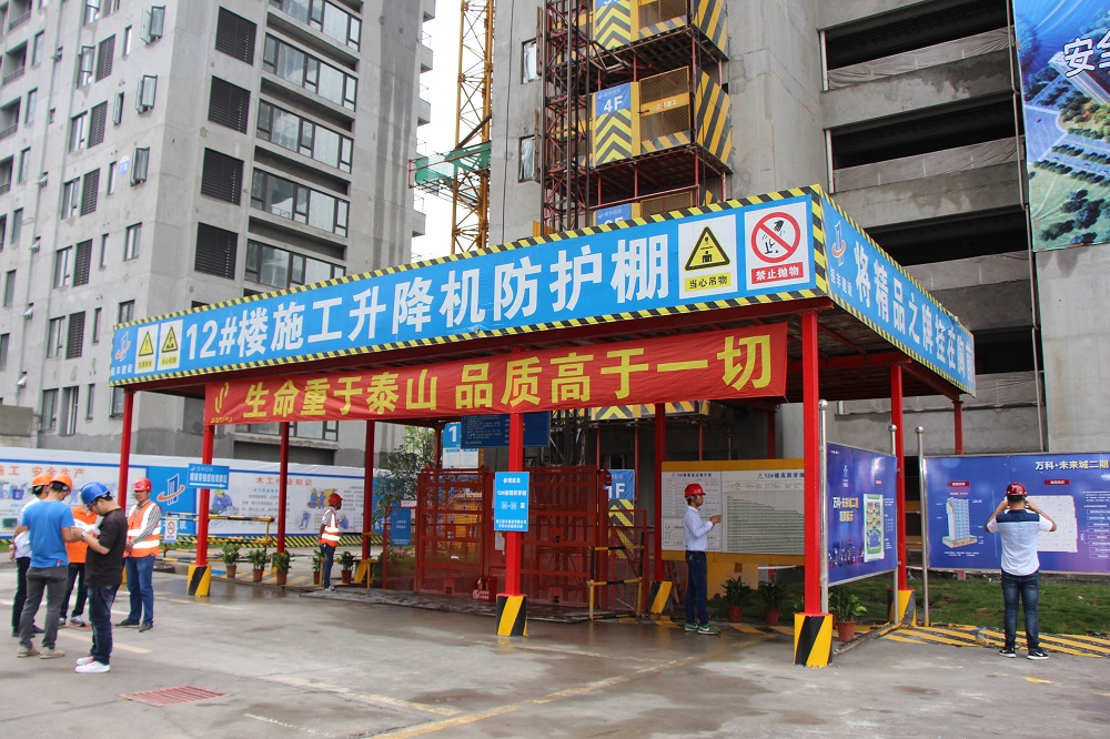 在观摩会现场,我司工程人员和大家分享了安全文明施工特色经验,比如在工程施工中使用整体爬升式脚手架,免除了脚手架的拆装工序,极大地节省了人力和材料,安全管理检查节点也大为减少;设置电瓶车充电桩及USB手机充电接口,充电电压稳定,且有效避免工人私接电线的现象,减少消防安全隐患;推出智能化门卫系统,主大门采用闸机进行人车分流,使用智能化信息系统刷安全帽芯片入场,满足安全需要;采用BIM技术生动形象地将虚拟环境展示出来,使大家对现场施工有了更加深刻的认识,并在保证安全的前提下,通过VR技术事先体验突发危险,提高管理人员及工人的安全事故防范意识。
