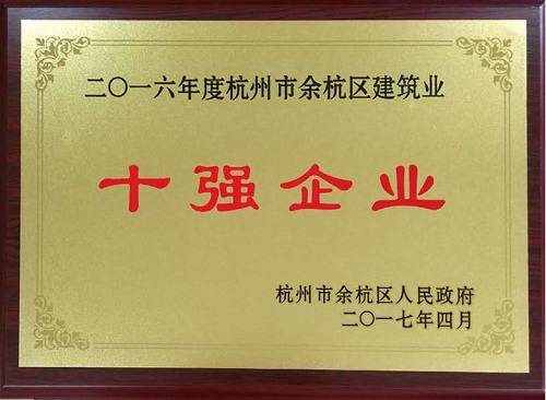 贺我司荣获2016年度“余杭区建筑业十强企业”