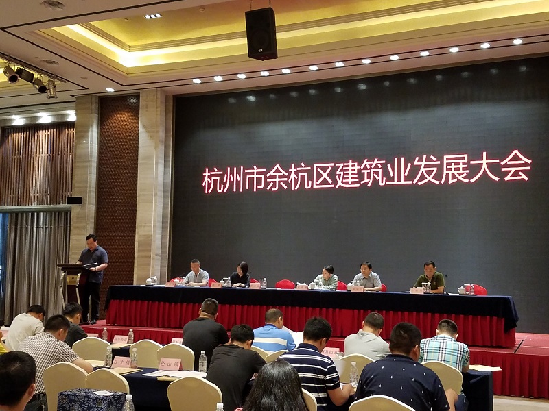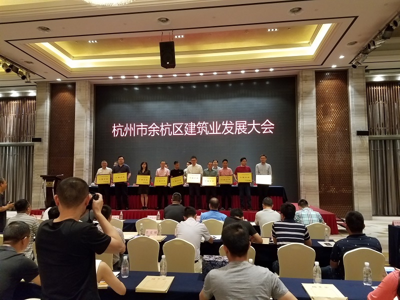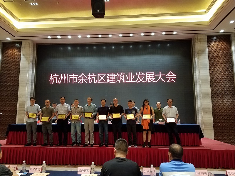 2017年5月14日下午,余杭区建筑业发展大会胜利召开。会议表彰了2016年度余杭区建筑业“十强”企业、十大建造师及其他优秀企业。我司被授予“2016年度余杭区建筑业十强企业”、“ 2016年度余杭区建筑业安全生产、文明施工优秀企业”等荣誉,吴叶波荣获“2016年度余杭区建筑业十大建造师”称号。总经理徐祖雷代表公司作了交流发言。