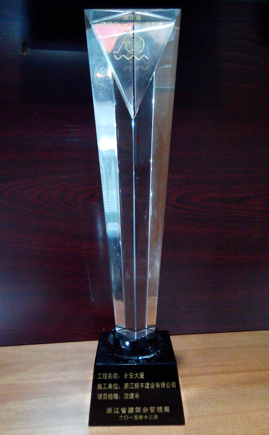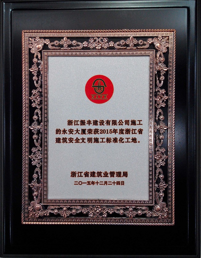 近日,从浙江省建筑业管理局传来喜讯,我公司承建的永安大厦工程喜获“2015年度浙江省建筑安全文明施工标准化工地” 荣誉称号。